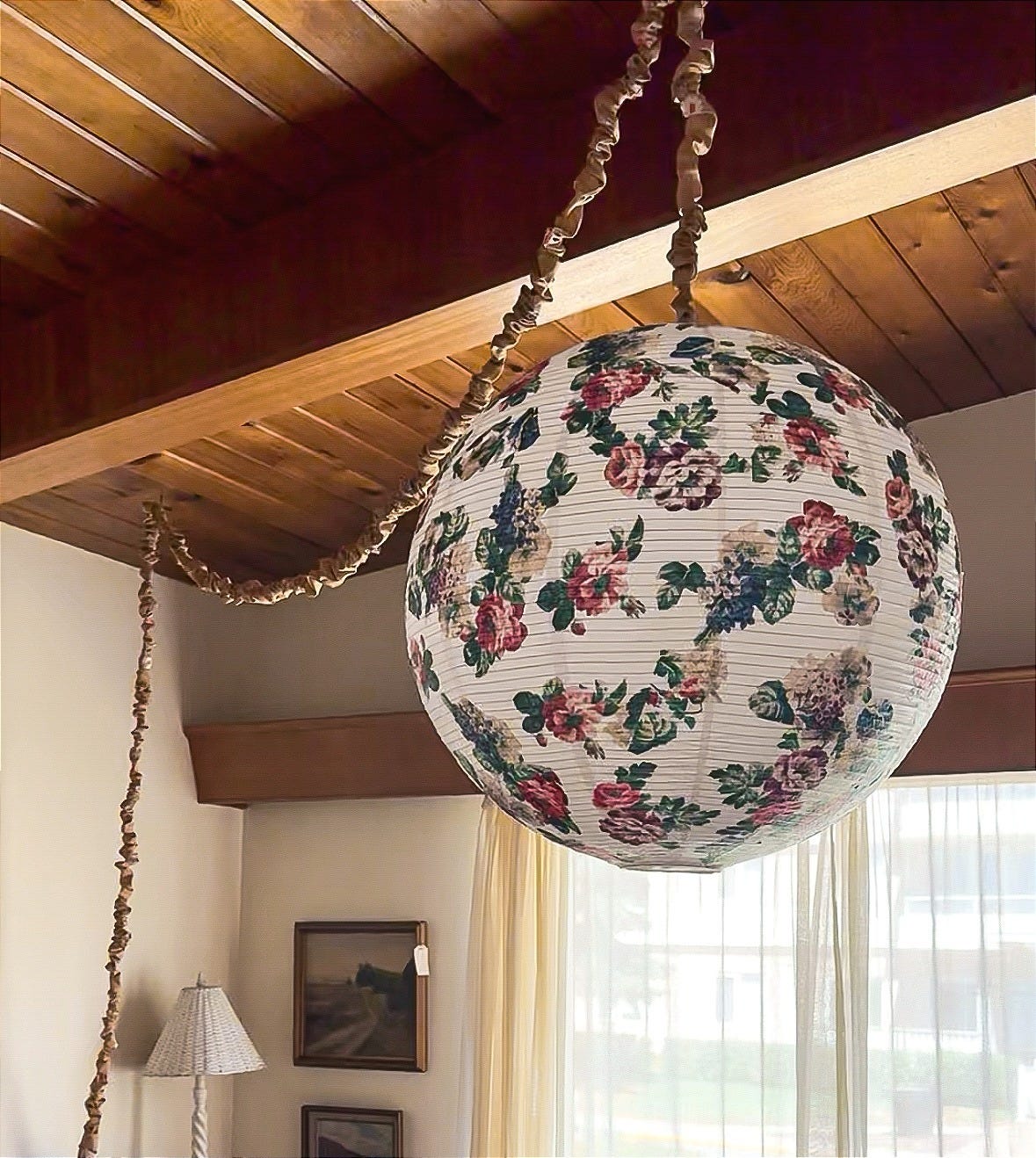Cathryn had already transformed an IKEA paper lantern with a little ingenuity and Mod Podge, but its 20-foot cord was crying out for the same treatment. Enter: the easiest, most forgiving sewing project imaginable. Just cut bias strips of fabric (around 4" wide), fold in half with right sides facing and sew along the raw edge. Turning the tubes right side out is the most time-consuming part, but thankfully, it pairs perfectly with a Netflix binge. (Sirens, if you’re curious.)
