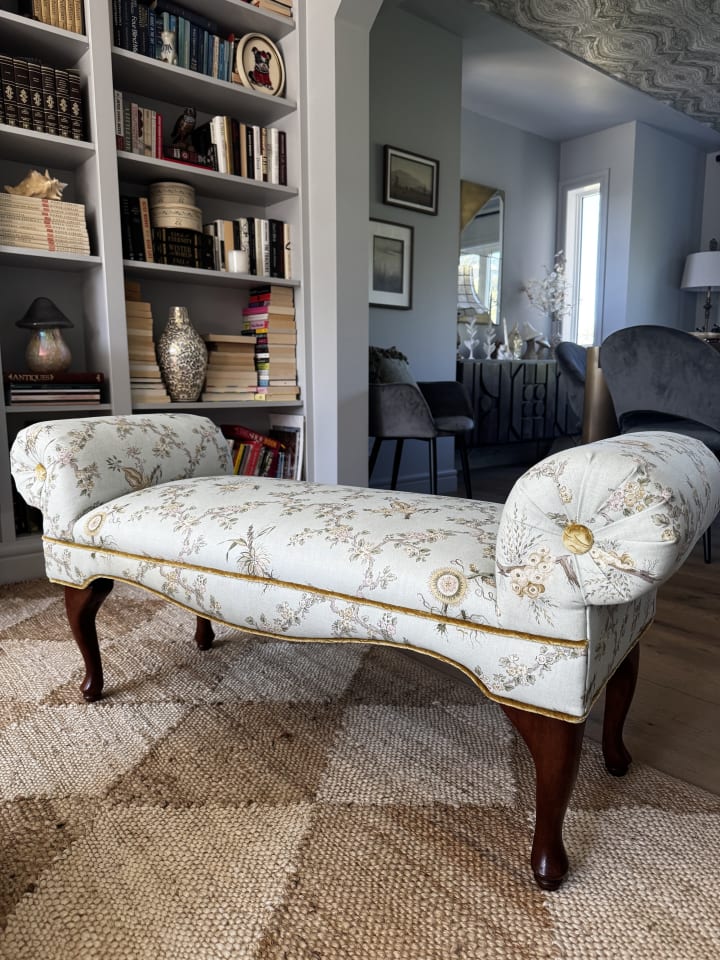 In happier news, a very exciting delivery arrived: a $30 Facebook Marketplace bench, now completely transformed thanks to one of my favourite fabric collaborations in recent memory: Giles Deacon x Sanderson. I’m smitten with the entire collection, which manages to feel both timeless and fantastically eclectic in the best way. The bench transformation was the ideal opportunity to use a fabric I’ve long been coveting: Trelliage in Aphrodite/Blush. The bench is now living its best life and has never looked better.